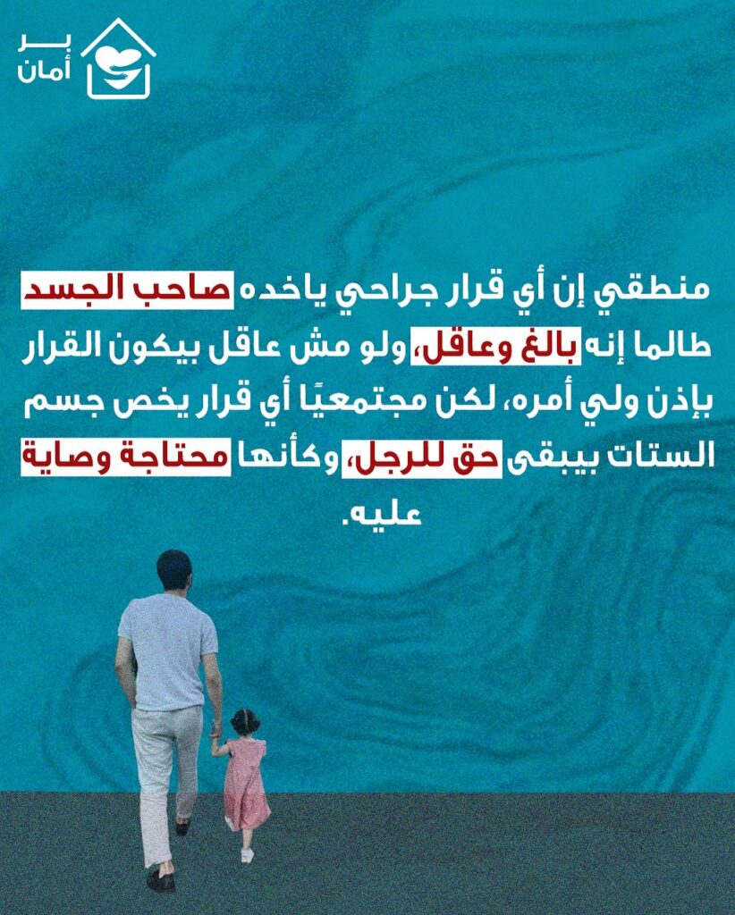 منطقي إن أي قرار جراحي ياخده صاحب الجسد طالما إنه بالغ وعاقل، ولو مش عاقل بيكون القرار بإذن ولي أمره، لكن مجتمعيًا أي قرار يخص جسم الستات بيبقى حق للرجل، وكأنها محتاجة وصاية عليه.