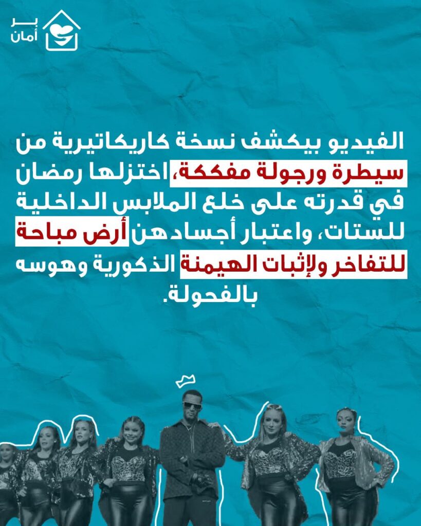الفيديو بيكشف نسخة كاريكاتيرية من سيطرة ورجولة مفككة، اختزلها رمضان في قدرته على خلع الملابس الداخلية للستات، واعتبار أجسادهن أرض مباحة للتفاخر ولإثبات الهيمنة الذكورية وهوسه بالفحولة.