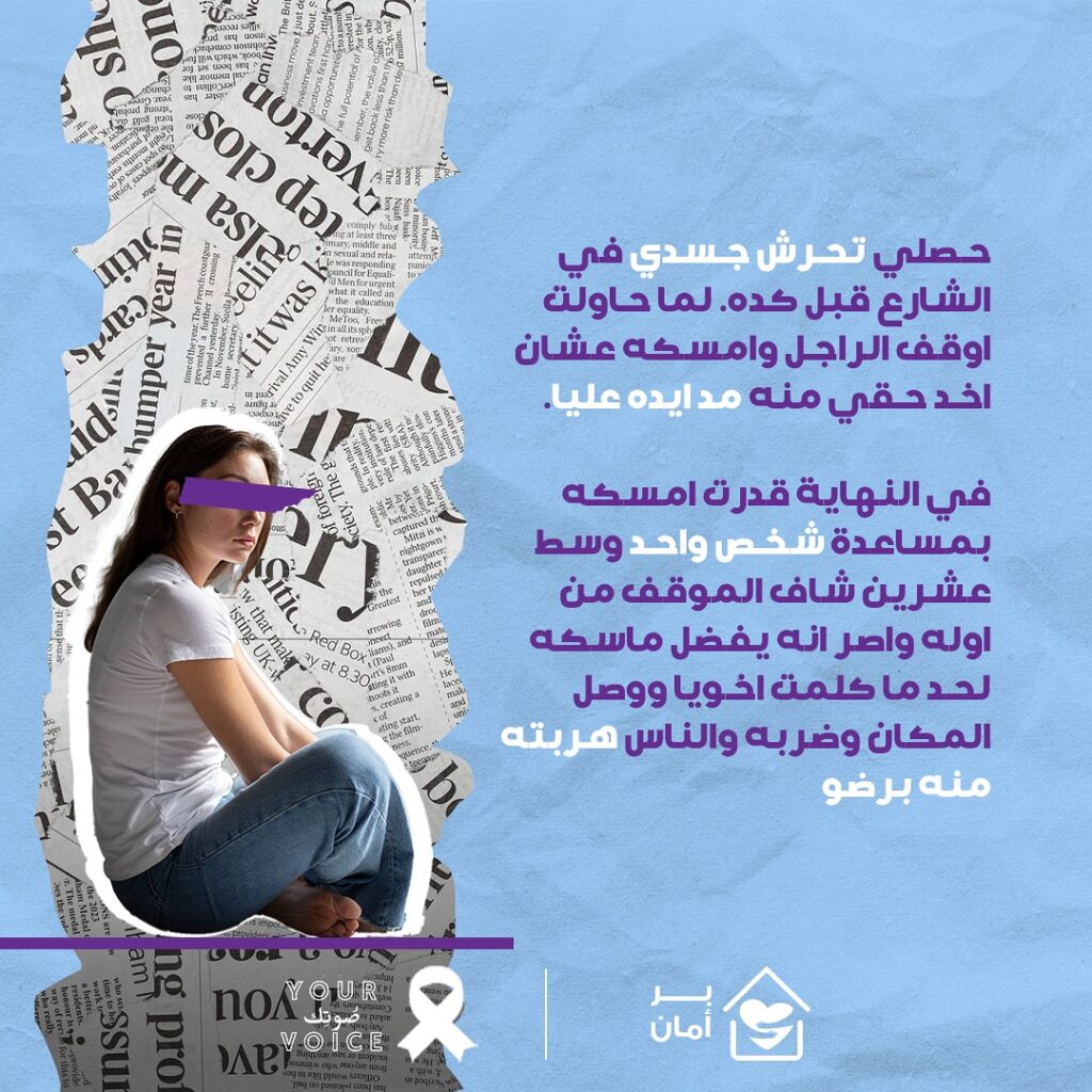 المتحرش لازم يتعاقب سواء بأنك تفضحي فعله أو تبلغي عنه أو تعبري عن رفضك بشكل واضح، المتحرش مش شخص لازم تخافي منه، أنتي صاحبه الحق.
